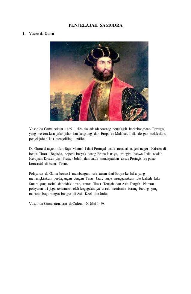Vasco da Gama diperintahkan oleh seorang raja yang bernama raja Manuel I yang berasal dari Portugal guna melakukan pencarian wilayahdaerah-daerah baru pada bagian wilayah timur yang sebelumnya pernah dilakukan oleh Bartolomeu Dias. Vasco Da Gama. Vasco Da Gama Adalah Vasco da Gama Biography Achievements Route Map.
